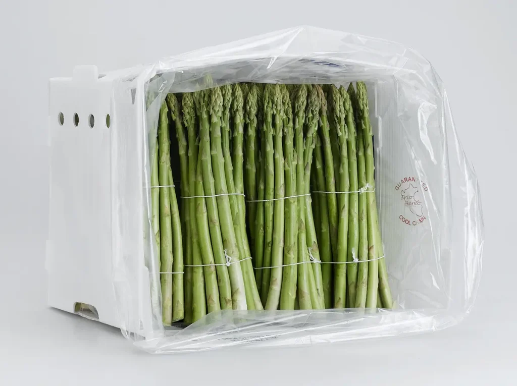 Conventional bulk liners for manual packing of green asparagus. Enable customers to store for longer and supply upon demand or ship to distant markets.